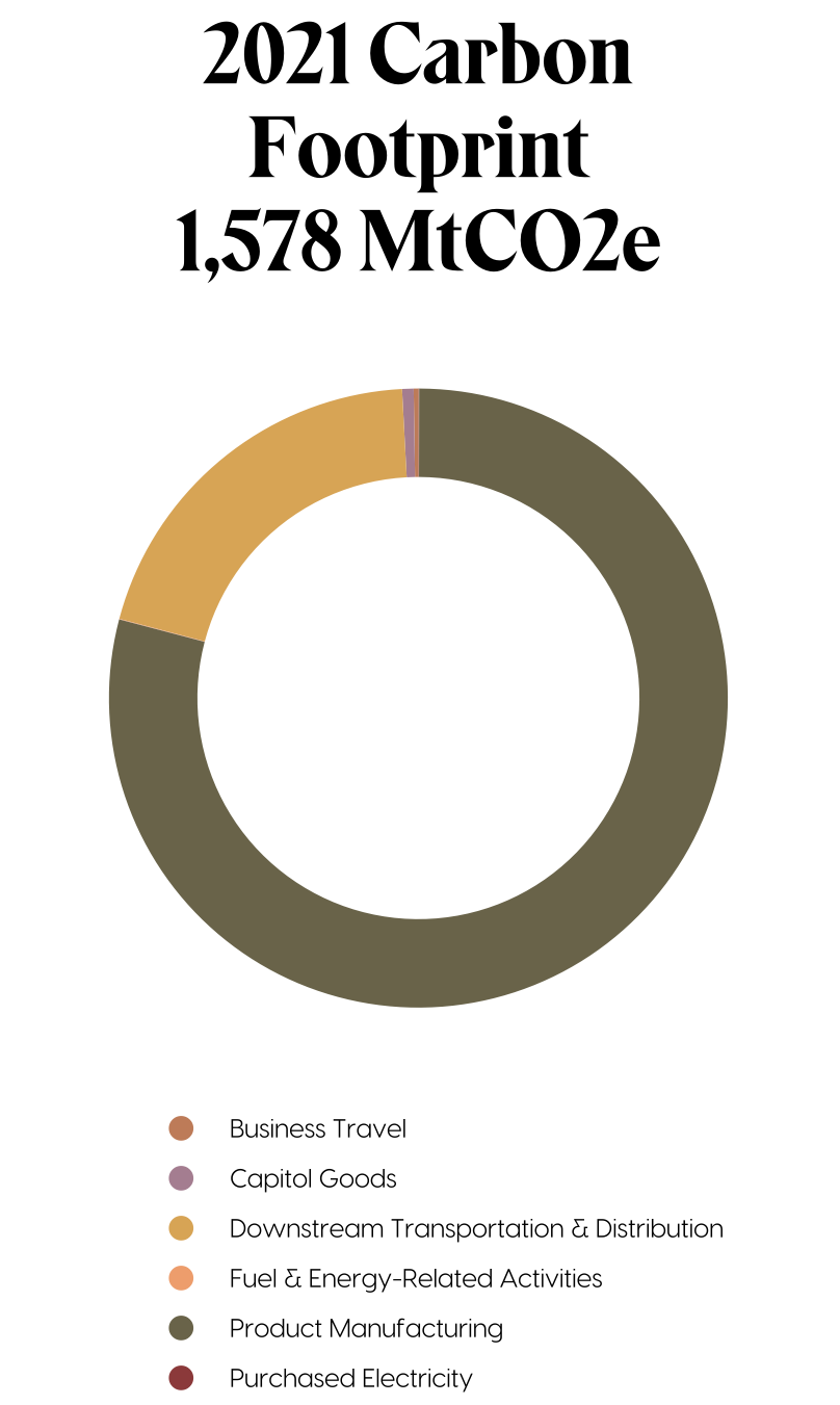 As we continue to scale, an increase in impact is inevitable. That's why in 2021, we examined our carbon intensity in order to limit emissions on a per product basis. In the long run, this will help us keep our emissions to a minimum.